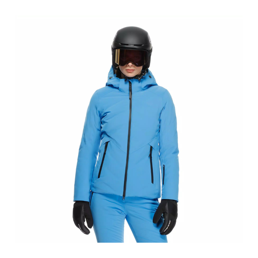 Piumino tecnico impermeabile dotato di tessuto esterno Dermizax®EV (20.000mm/20.000g/m²/24h) e morbida imbottitura in vera piuma, studiato per le sciatrici che desiderano un piumino tecnico con la garanzia di impermeabilità e traspirabilità offerta dal tessuto Dermizax® EV.